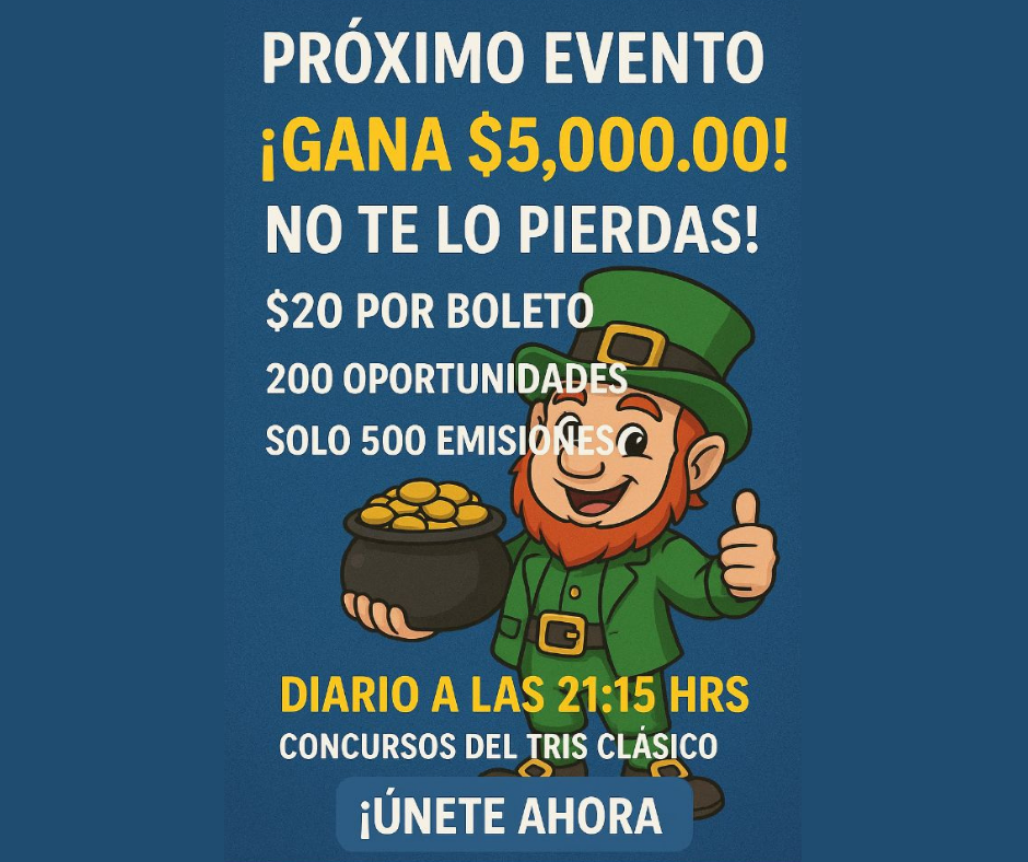 $ 20 PESOS EL BOLETO CON 200 OPORTUNIDADES DE GANAR Y SOLO 500 EMISIONES, SORTEO CON BASE EN EL TRIS CLÁSICO